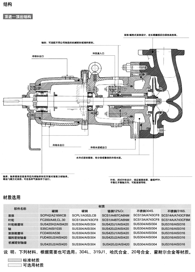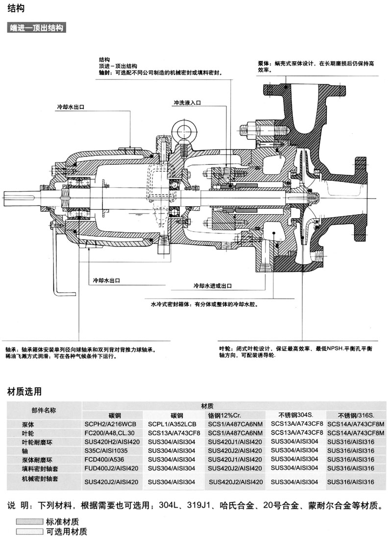 UCW系列泵為單極、單吸、臥式、殼體中心線支承結(jié)構(gòu)的離心泵。