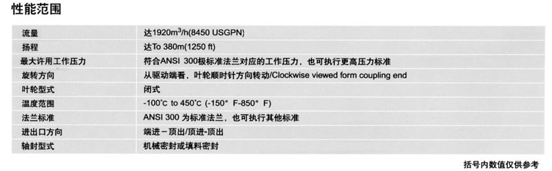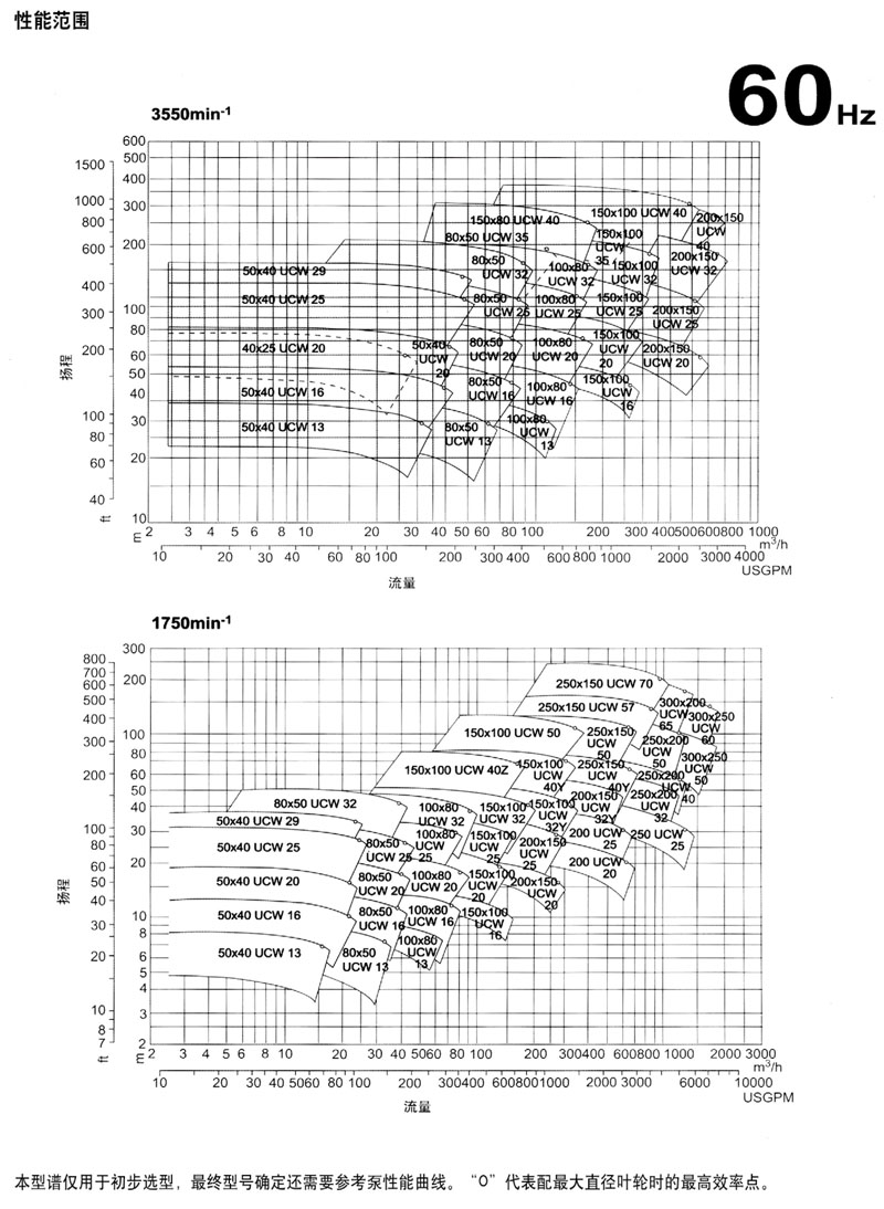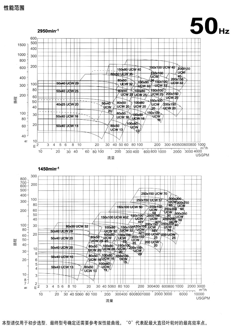 (·2)當(dāng)葉輪直徑代碼后有字母“Y”?!癦”時(shí)表示不同的葉輪和泵體設(shè)計(jì)。例如,150×100 UCWM 400,150X100 UCWM 40Y.
