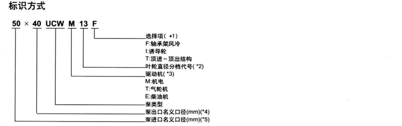 (·3)當(dāng)泵配置增速或降速裝置時(shí),母“G”,例如,150x100 UCW G M表示泵被通過(guò)齒輪箱的電機(jī)驅(qū)動(dòng)。