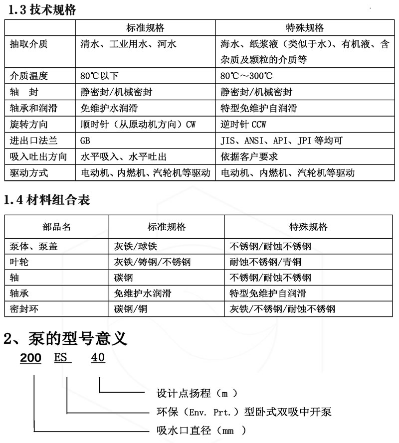 ES 系列環(huán)保免維護(hù)單級(jí)雙吸中開臥式和立式離心泵,是我公司在總結(jié)多年雙吸泵制造及應(yīng)用經(jīng)驗(yàn)的基礎(chǔ)上,結(jié)合用戶在用泵過程中的痛點(diǎn),由公司專家與國內(nèi)外專家共同創(chuàng)造發(fā)明的一種新型水泵(臥式泵專利號(hào):ZL 201822092944.2;立式泵專利號(hào):ZL 2019 2 0293130.7)。其主要特點(diǎn)是環(huán)保、免維護(hù)。
